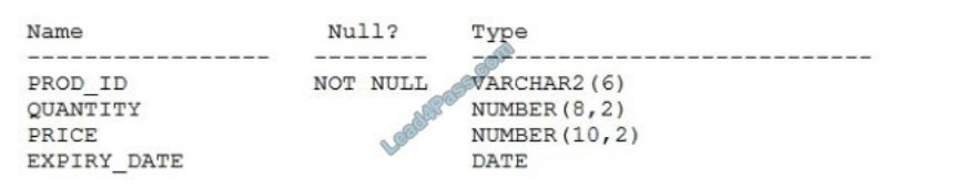 Examine this description of the PRODUCTS table:![[2021.4] leads4pass 1z0-071 practice test q8](https://www.multiexam.com/wp-content/uploads/2021/04/q8.jpg)